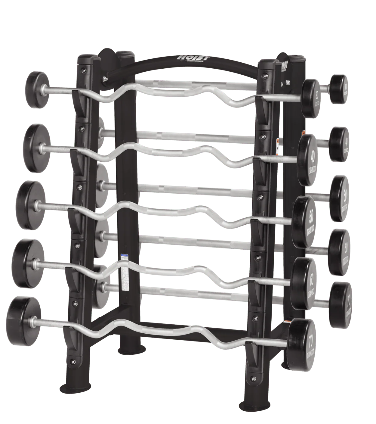 The HOIST Barbell Rack CF-3465 is a heavy-duty, commercial-grade storage solution designed to securely hold fixed-weight barbells in a clean, organized layout.