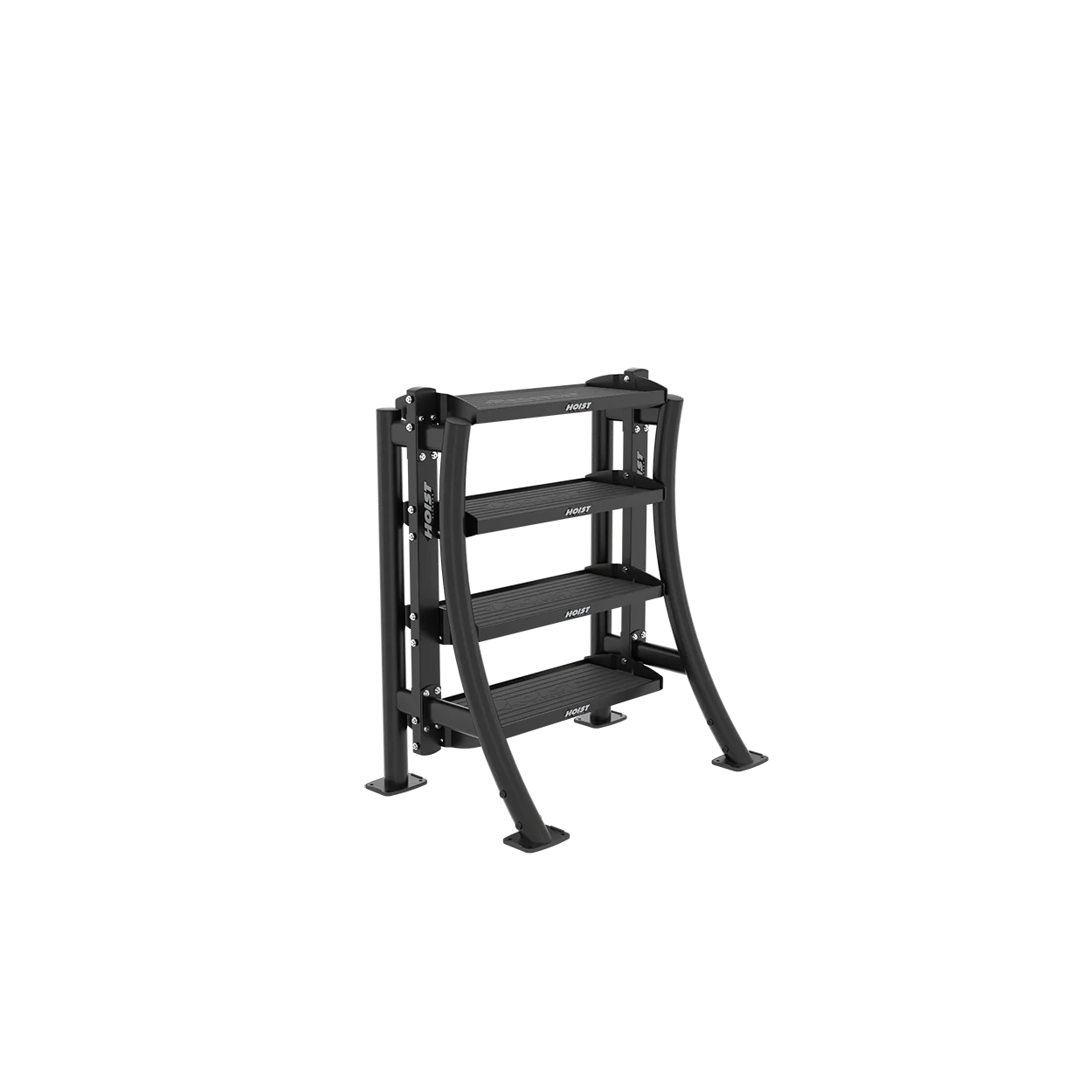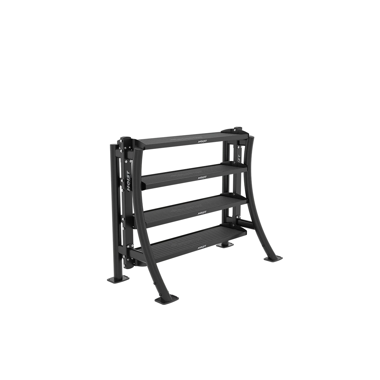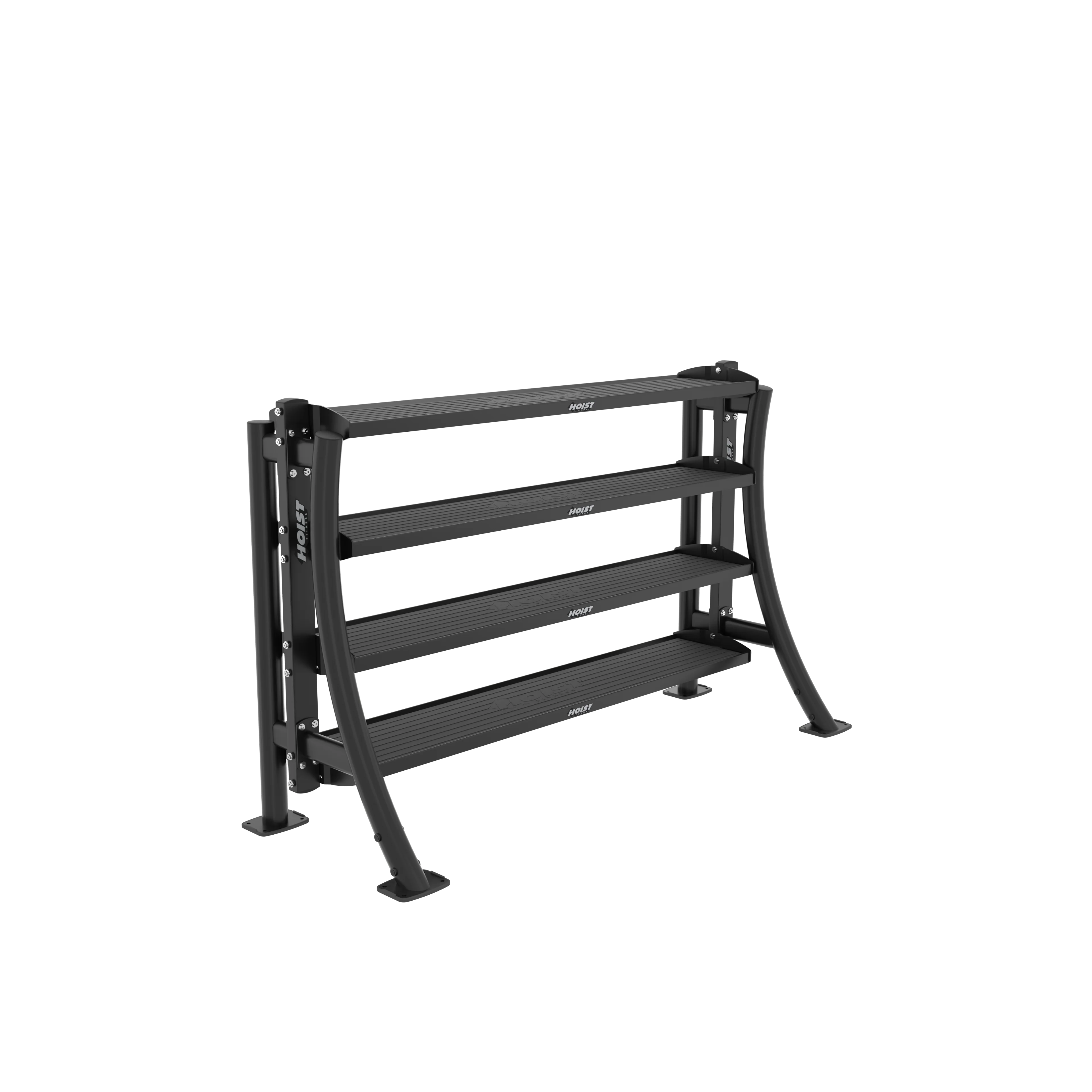Part of the HOIST Performance Series, this rack features flat or angled shelving trays with textured Performance Black surfaces for added grip and durability. It’s ideal for storing a wide range of equipment—such as dumbbells, kettlebells, and accessories—while maintaining a clean, efficient workout space. The rack includes low-profile hardware, rubber feet for stability, and stylish powder-coated uprights available in Matte Black or Platinum finishes. With a modular design that supports multiple configurations, the PS-4USR adapts easily to different facility layouts and training needs.
