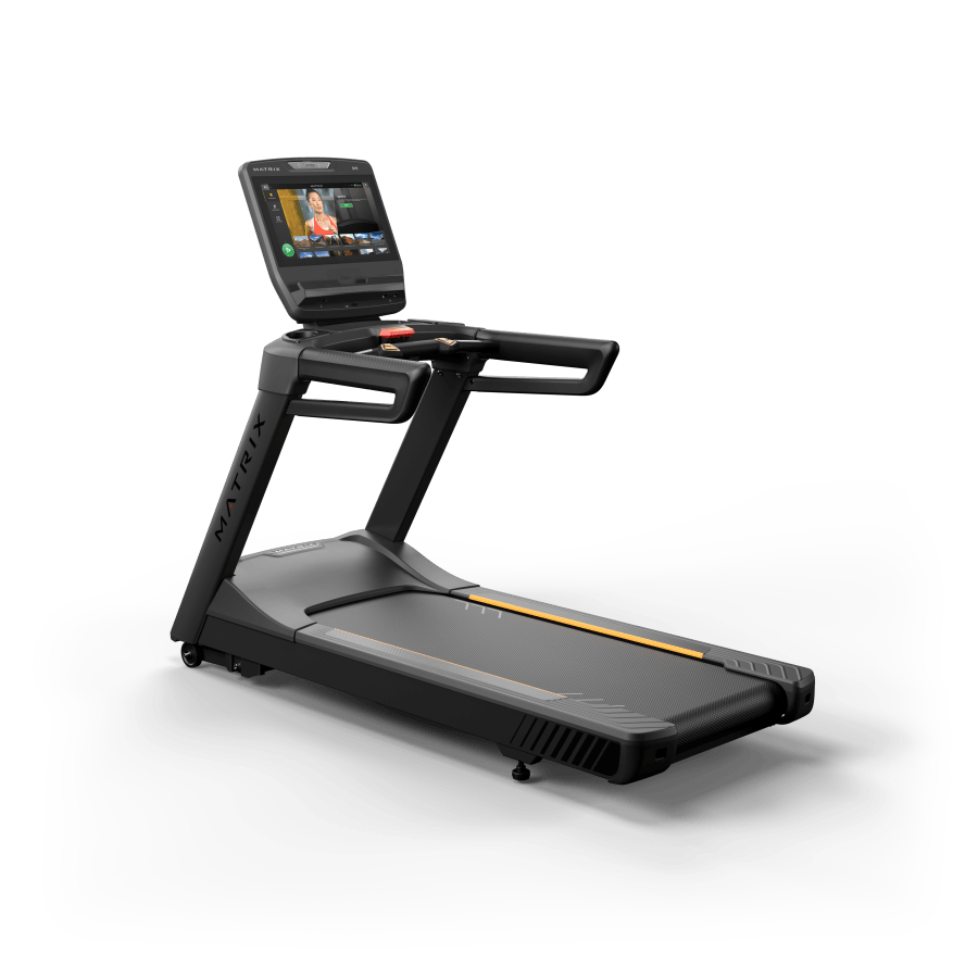 The Matrix Fitness Onyx Treadmill is a luxury-grade cardio machine designed to elevate the workout experience through immersive technology and refined aesthetics.